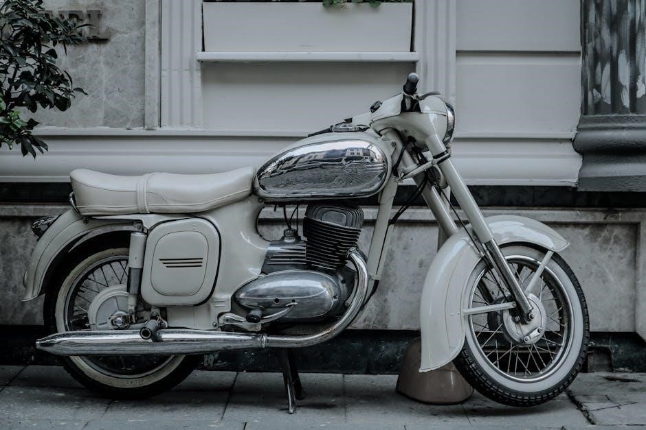 Regular maintenance ensures your motorbike’s reliability and safety․ Frequently check tire pressure and tread depth‚ inspect fluid levels (oil‚ coolant‚ brake fluid)‚ and examine brake pads for wear․ A well-maintained chain is crucial; clean‚ lubricate‚ and adjust it regularly․ Ignoring these basics can lead to costly repairs and dangerous situations․ Learning these simple checks empowers you to identify potential issues early‚ keeping your ride smooth and secure․ Consistent upkeep extends your motorbike’s lifespan significantly․
