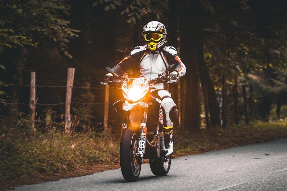 Obtaining a motorcycle license is crucial before hitting the road․ Requirements vary by location‚ typically involving a written knowledge test and a practical riding skill assessment․ Beyond the license‚ investing in professional rider training courses is highly recommended․ These courses provide essential skills and hazard perception techniques‚ significantly enhancing safety․ Proper training builds confidence and equips beginners with the necessary tools to navigate traffic effectively․ Prioritizing education minimizes risks and fosters responsible riding habits‚ ensuring a safe and enjoyable motorcycling experience․